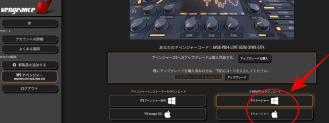 ソストが無い人は、AVENGER ACCOUNT から「V-MANAGER」を立ち上げます。