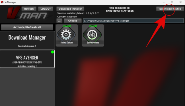 ⑶ V-MANAGERの右上に「Download Keyfile」をクリックで完了。
